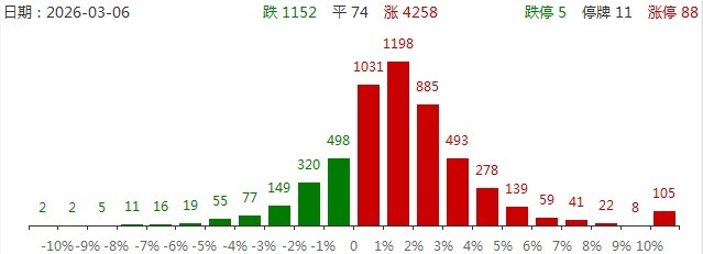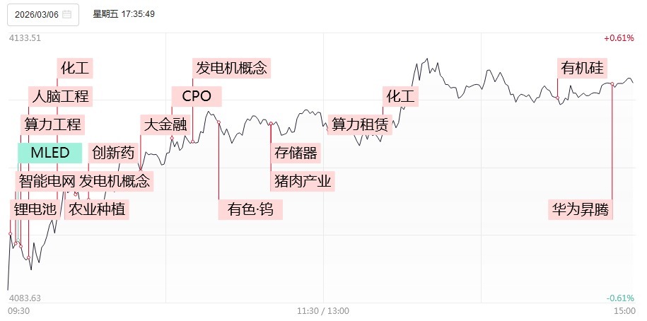 3月6日,沪指、深成指低开高走,创业板指冲高回落,黄白线较着分化,微盘股指数涨超3%。末端收盘,沪指涨0.38%,深成指涨0.59%,创业板指涨0.38%。沪深两市成交额2.2万亿,较上一个往返日缩量1899亿。盘面上,市集热门快速轮动,全市集超4200只个股高涨。从板块来看,化工板块集体拉升,十余只因素股涨停,金牛化工5天3板,金廉正、金浦钛业、红宝丽、红墙股份涨停。电网修复见解反回生跃,顺钠股份、汉缆股份双双3连板。燃气轮机见解快速走强,万泽股份、常宝股份涨停。CPO见解颤动回升开云(中国)Kaiyun·官方网站 - 登录入口,联特科技20CM涨停创历史新高。算力租出见解发扬活跃,宁波建工、威星智能双双涨停。着落方面,油气股发扬疲软,石化油服、中曼石油大跌。
